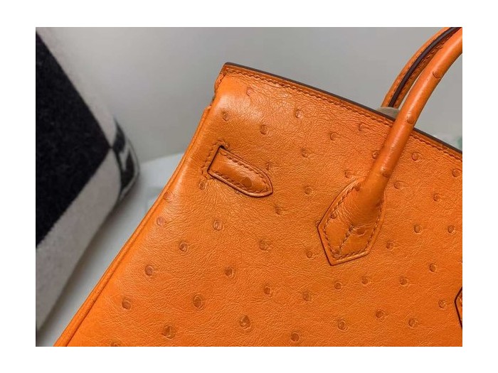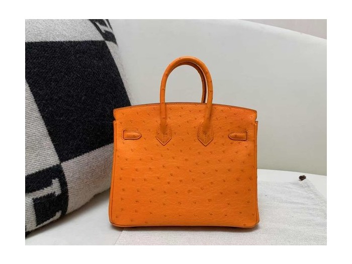 Hermès Birkin 25 Ostrich Orange x Palladium Hardware > Ostrich
