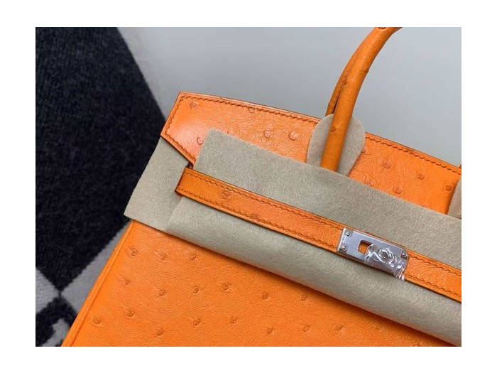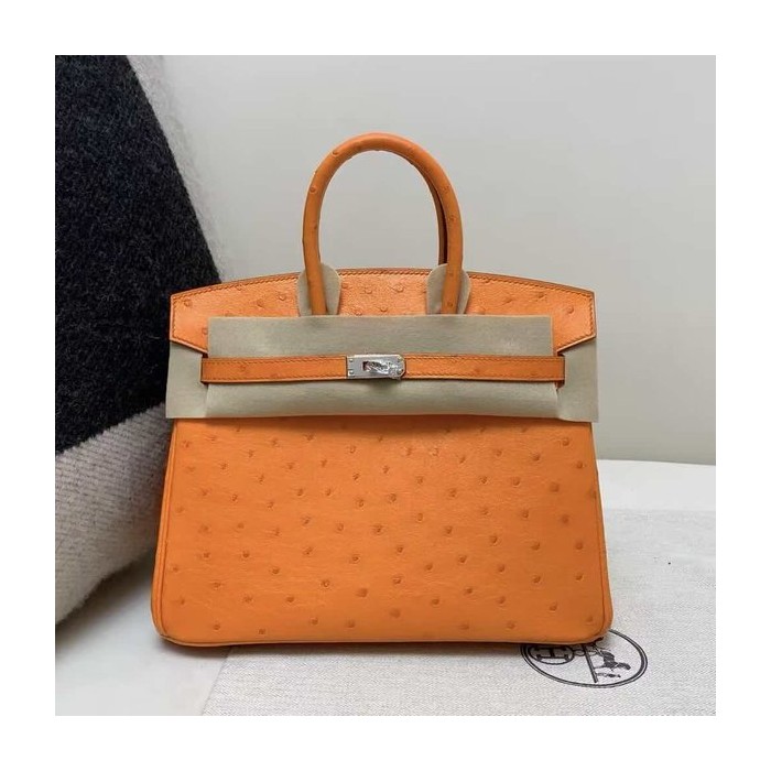 • Hermès Birkin 25 Ostrich Orange x Palladium Hardware