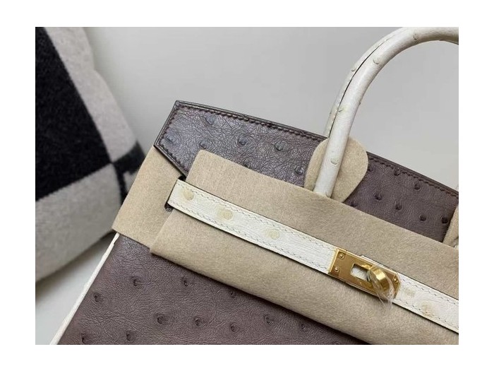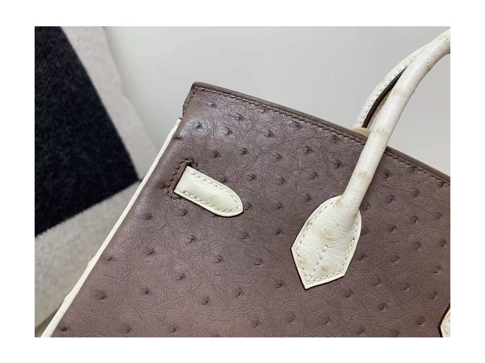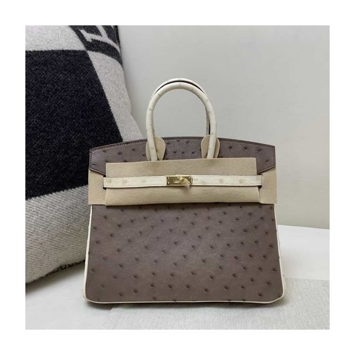 Hermès Birkin 25 Ostrich Moka & Nata x Gold Hardware > Ostrich