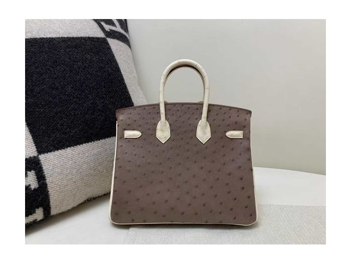 • Hermès Birkin 25 Ostrich Moka & Nata x Gold Hardware