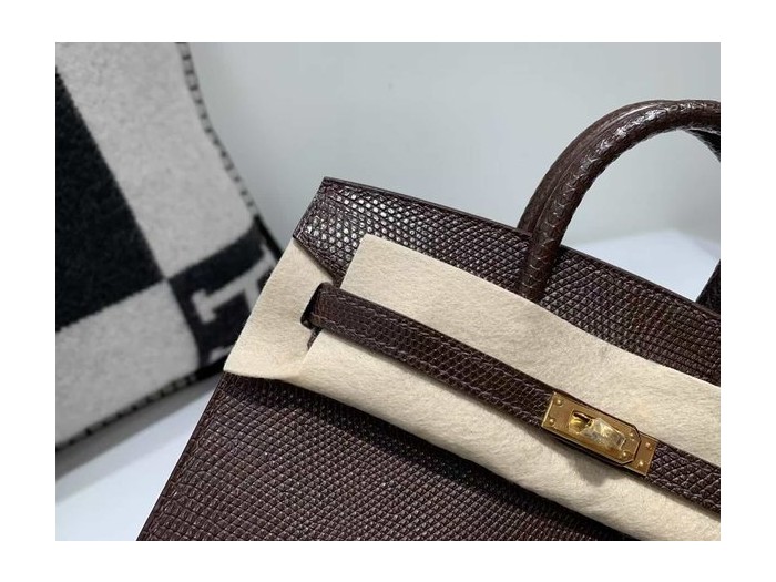 • Hermès Birkin 20 Lizard Chocolate x Gold Hardware