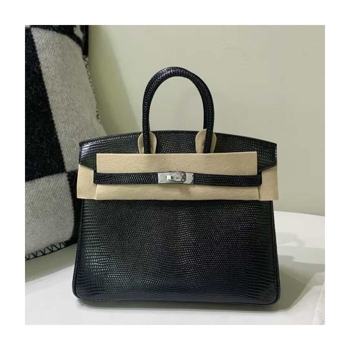 Hermès Birkin 25 Lizard Noir x Palladium Hardware