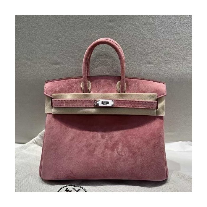 Hermès Birkin 25 Doblis Suede Rose Jaipur x Palladium Hardware > Suede
