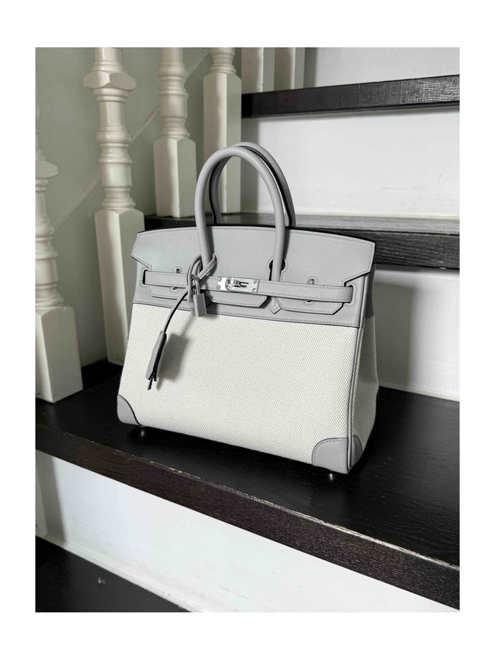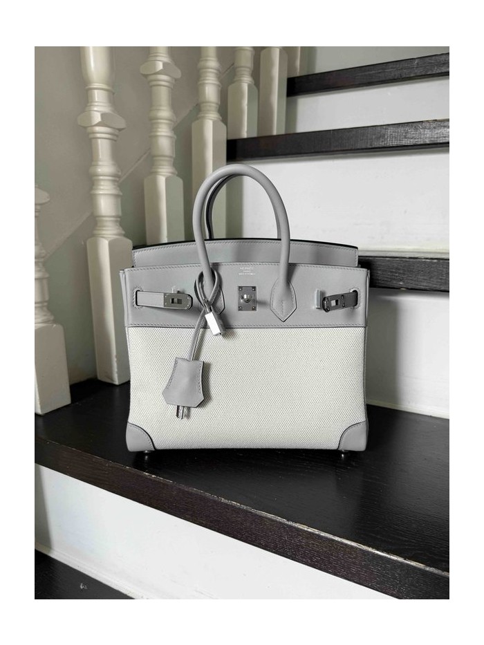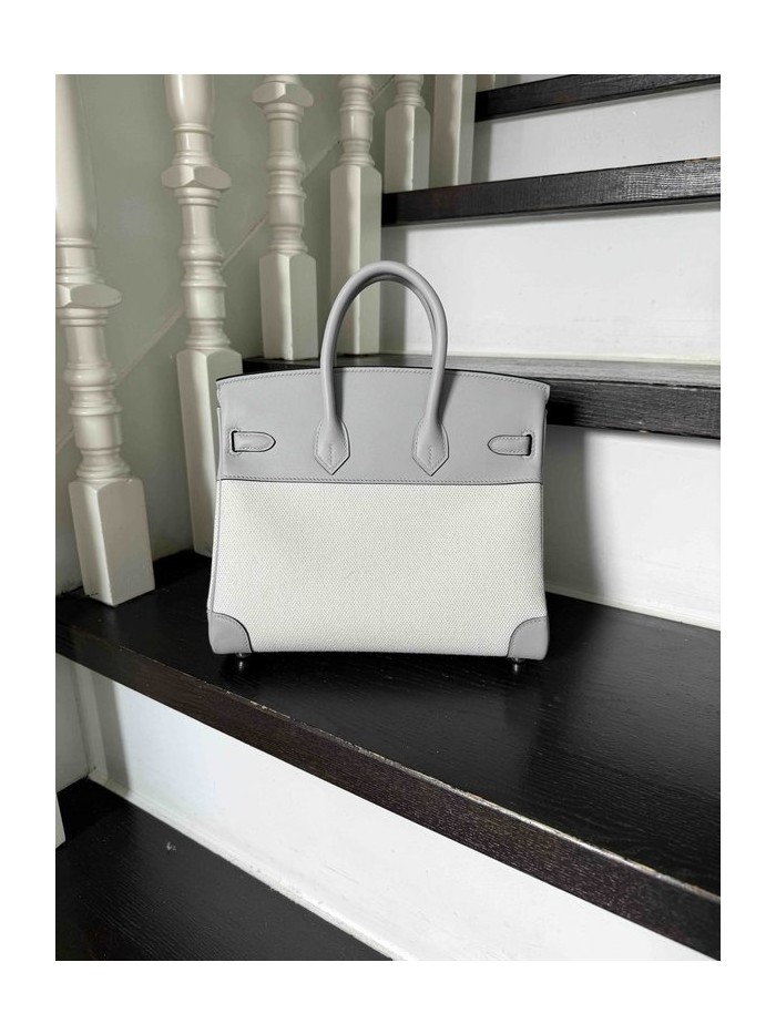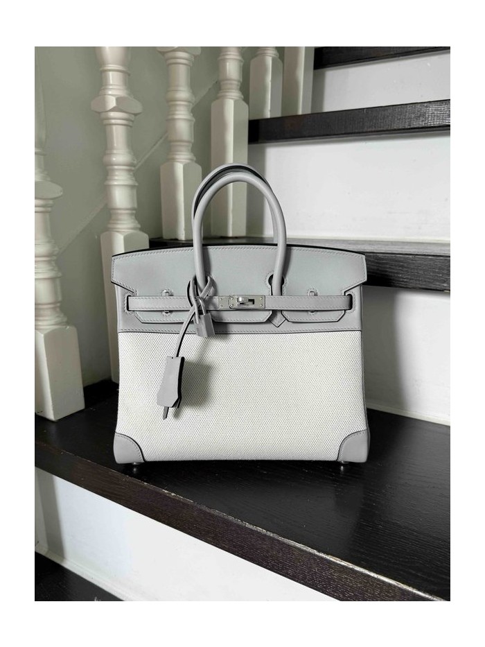 • HERMÈS Birkin 25 Bleu Glacier (8U) Swift Toile H canvas Palladium hardware