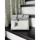 HERMÈS Birkin 25 Bleu Glacier (8U) Swift Toile H canvas Palladium hardware