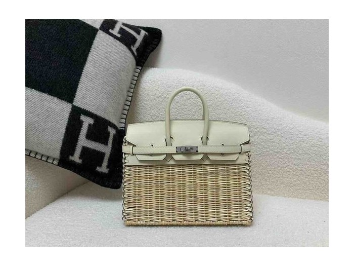 • Hermès Birkin 25 Picnic Wicker Milky White