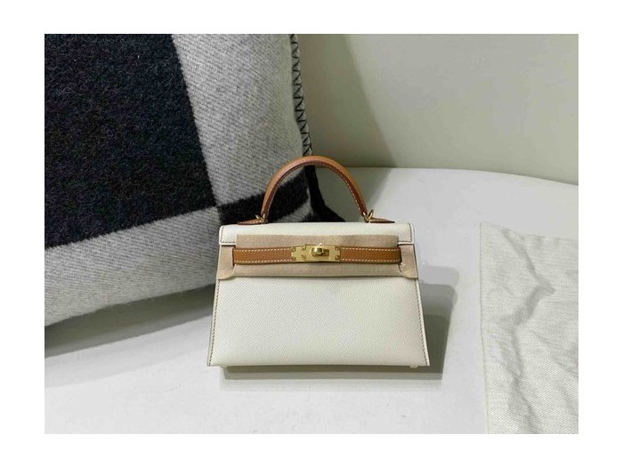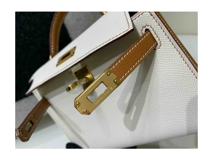 • Hermès Mini Kelly II Epsom Craie (Interior Gold) x Palladium Hardware