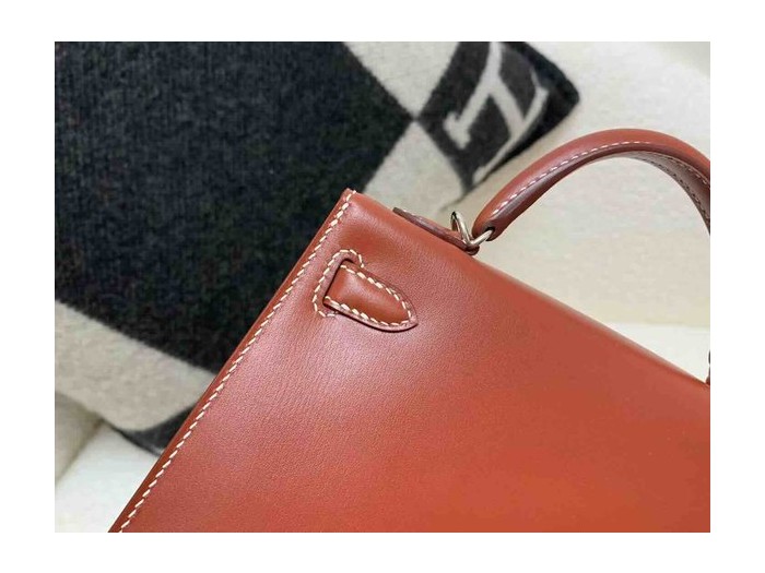 Hermès Mini Kelly II Box Brick Red x Palladium Hardware