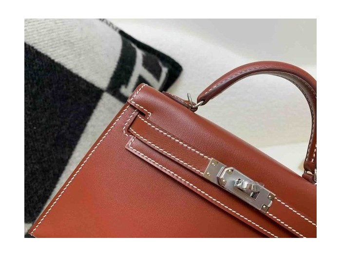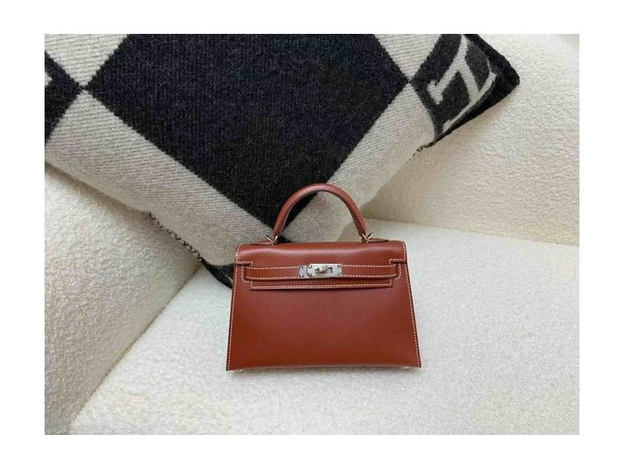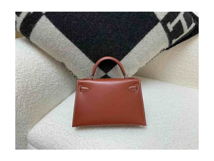 Hermès Mini Kelly II Box Brick Red x Palladium Hardware > Mini Kelly