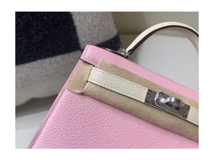 Hermès Mini Kelly II Rose Sakura x Nata Strap in Epsom x Palladium Hardware > Mini Kelly