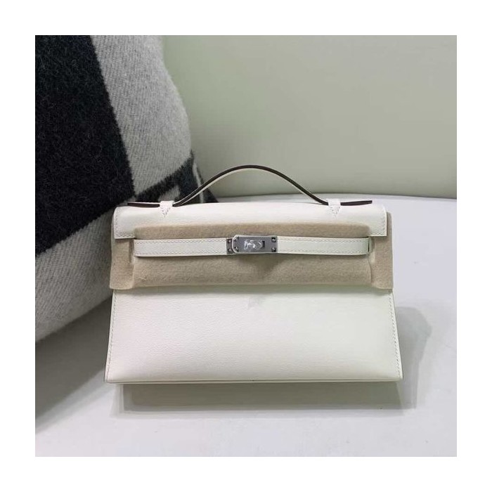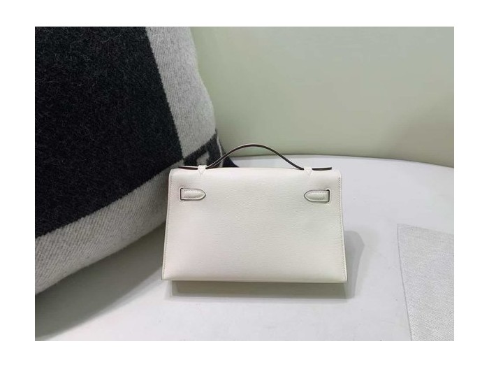• Hermès Kelly Pochette Swift Nata x Palladium Hardware