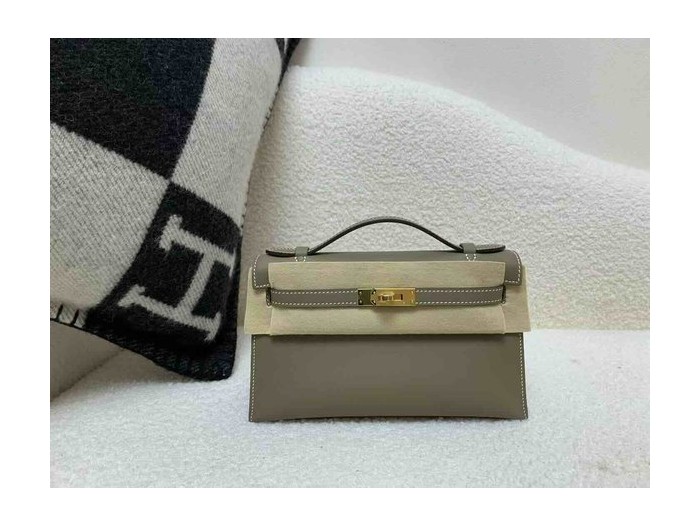 Hermès Pochette Swift Etoupe x Gold Hardware