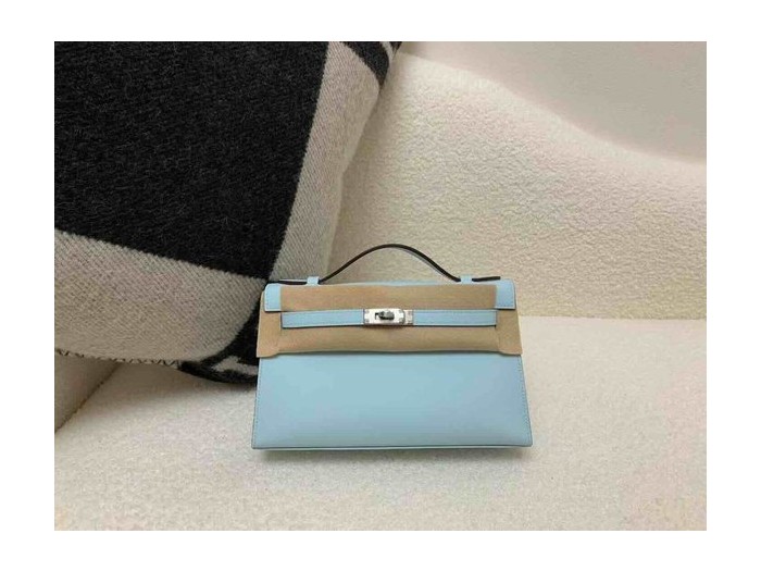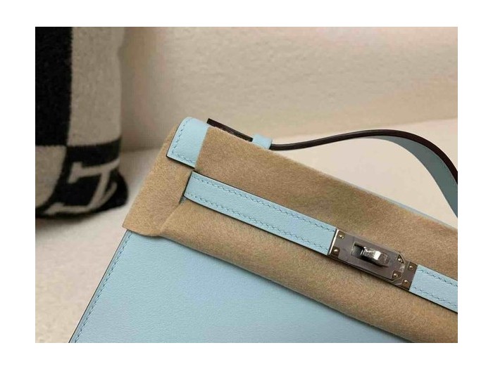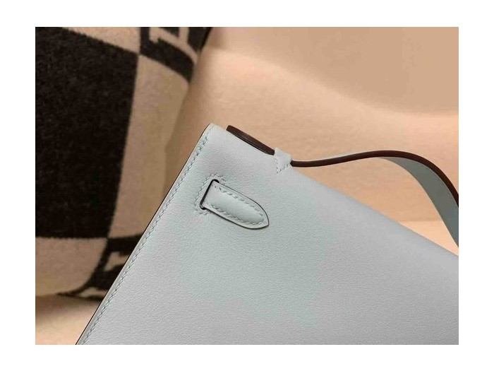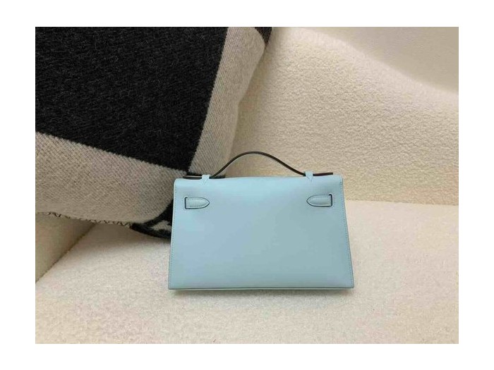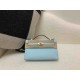 Hermès Pochette Swift Celeste x Palladium Hardware