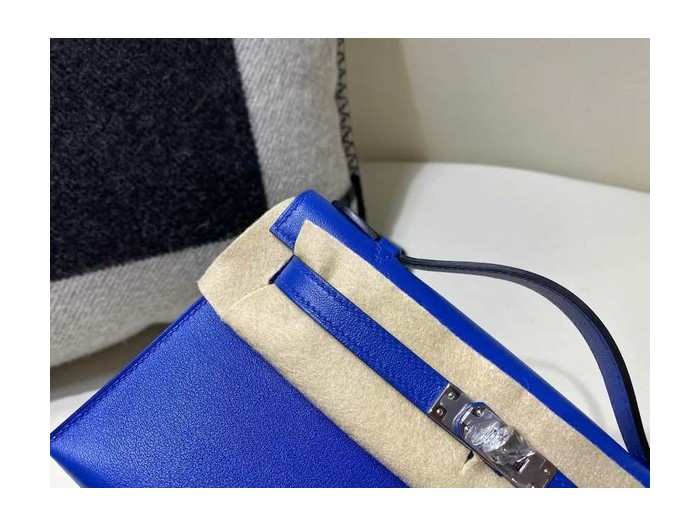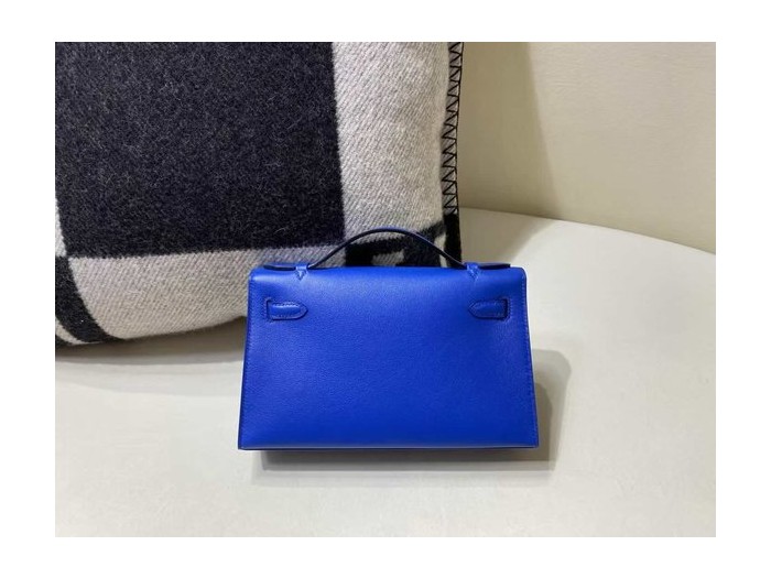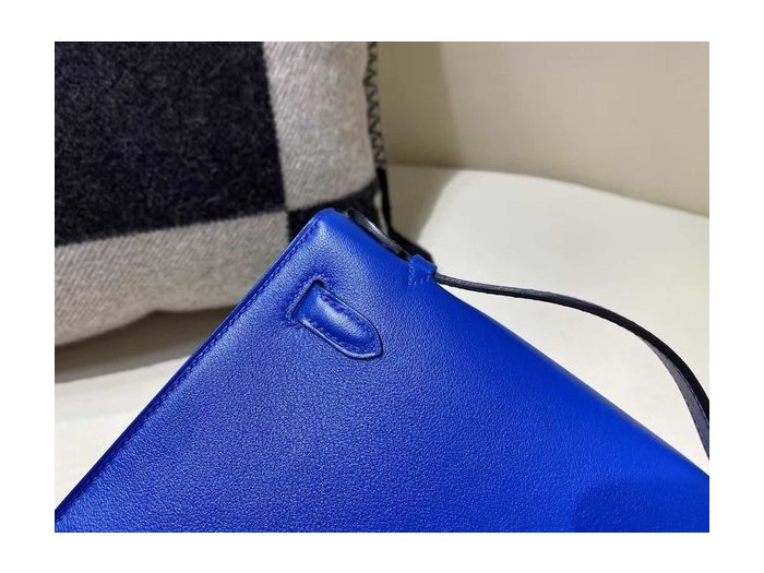 • Hermès Kelly Pochette Swift Bleu Electric x Palladium Hardware