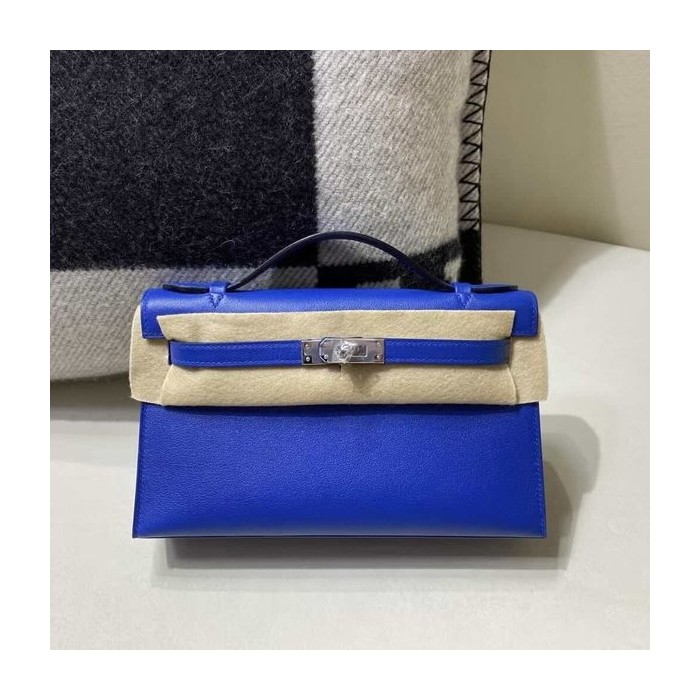 Hermès Kelly Pochette Swift Bleu Electric x Palladium Hardware