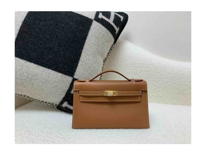 • Hermès Pochette Swift Gold x Gold Hardware
