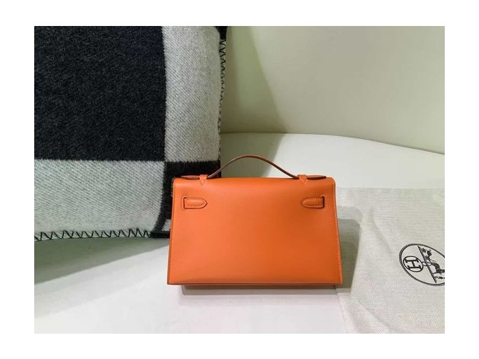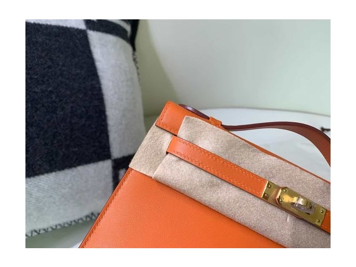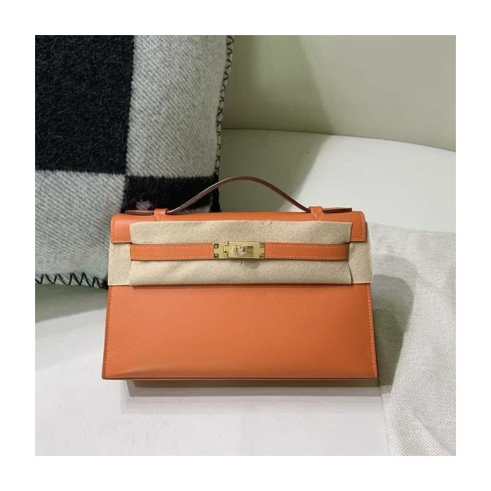 Hermès Kelly Pochette Swift Orange H x Gold Hardware