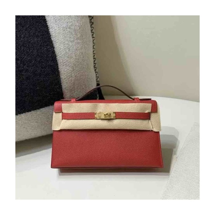 Kelly Pochette Epsom Rouge Casaque x Gold Hardware