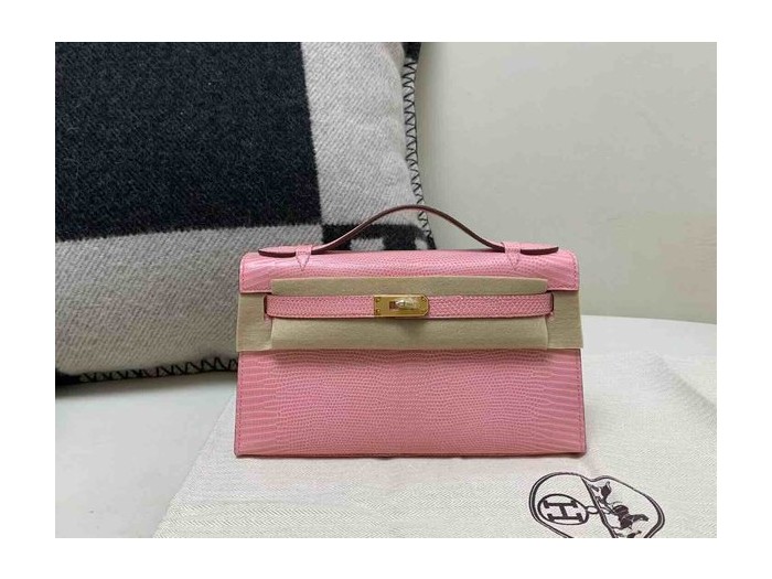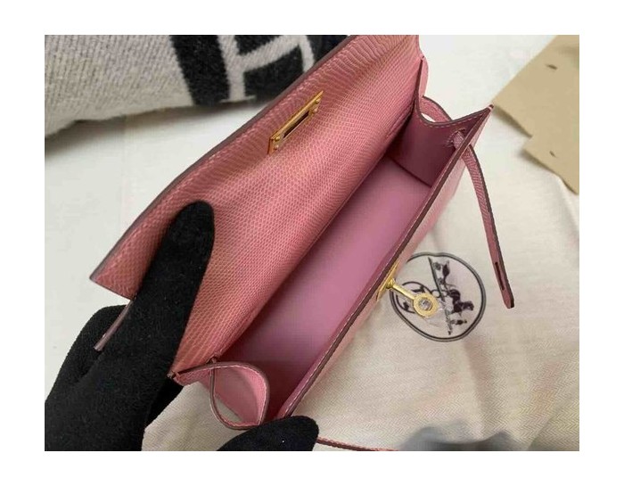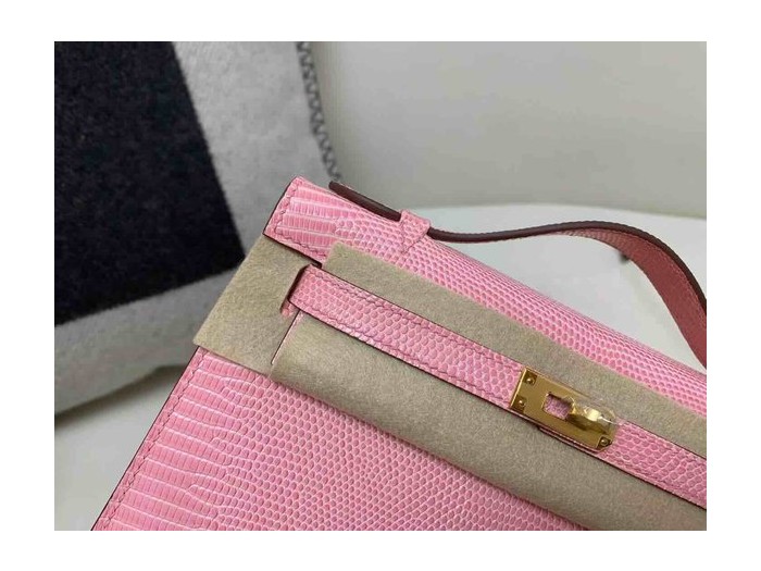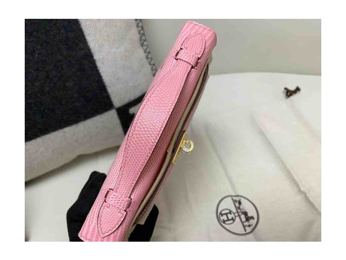 Hermès Pochette Lizard Rose Sakura x Gold Hardware