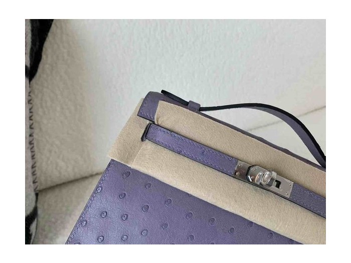 Hermès Pochette Ostrich Lavender Purple x Palladium Hardware