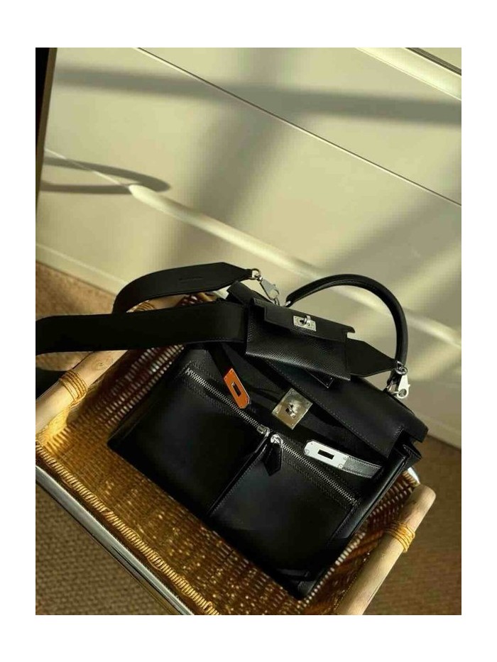 • Hermès Kelly25 Swift Lakis Noir x Palladium Hardware