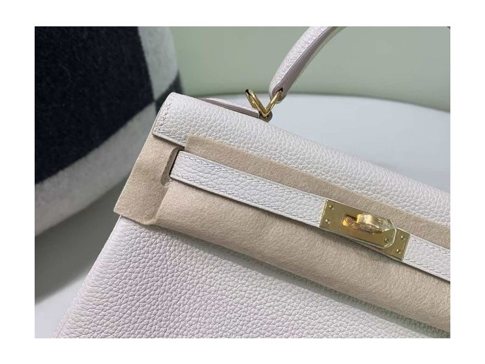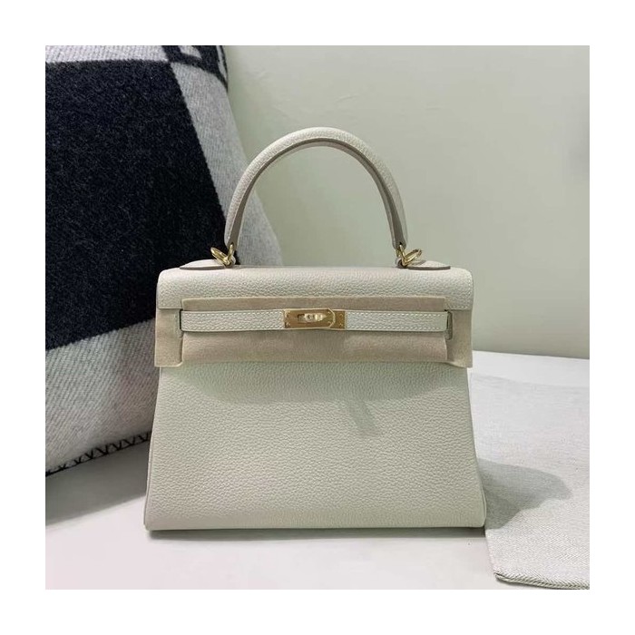 • Hermès Kelly 25 Togo Craie x Gold Hardware