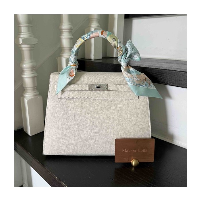 • Hermès Kelly 25 Epsom Sellier Craie x Palladium Hardware
