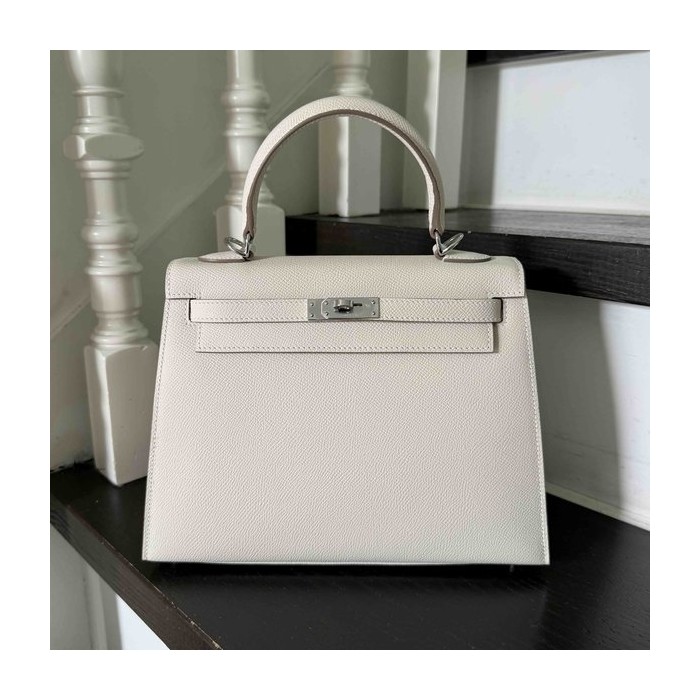 Hermès Kelly 25 Epsom Sellier Craie x Palladium Hardware