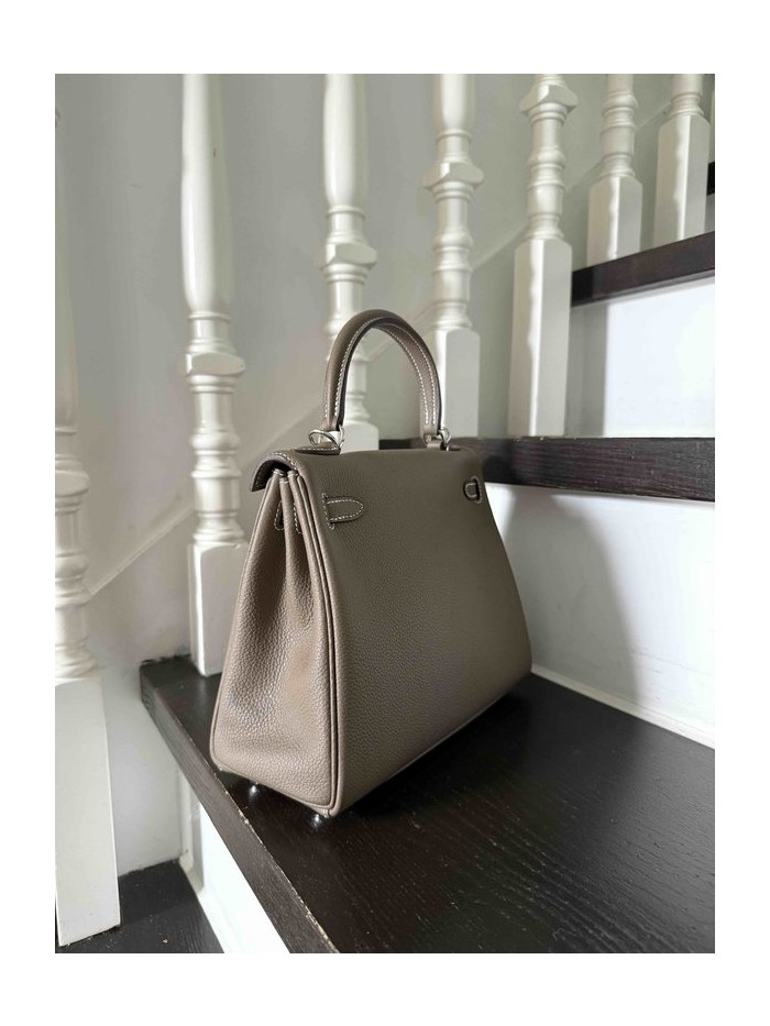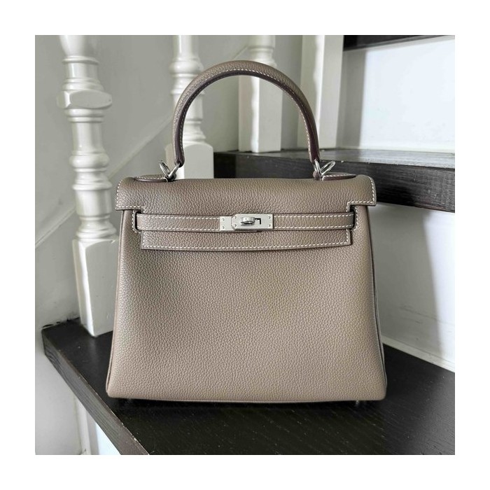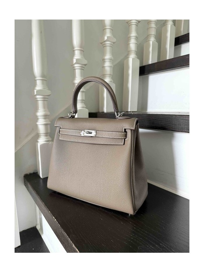 Hermès Kelly 25 Togo Etoupe x Palladium Hardware