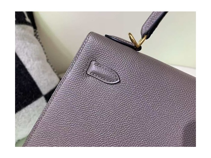 • Hermès Kelly 25 Epsom Sellier Etain x Gold Hardware