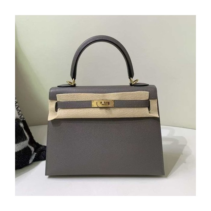 Hermès Kelly 25 Epsom Sellier Etain x Gold Hardware