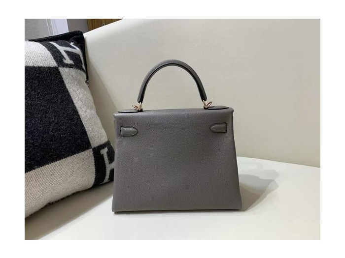 • Hermès Kelly25 Epsom Sellier Etain x Rose hardware