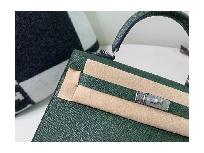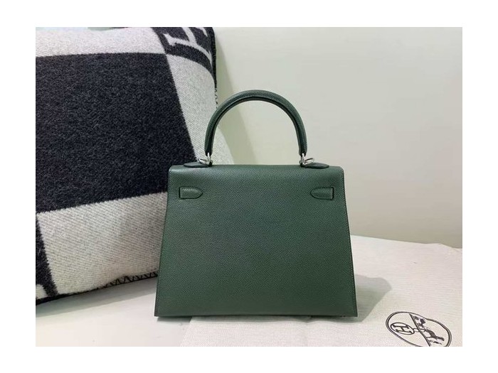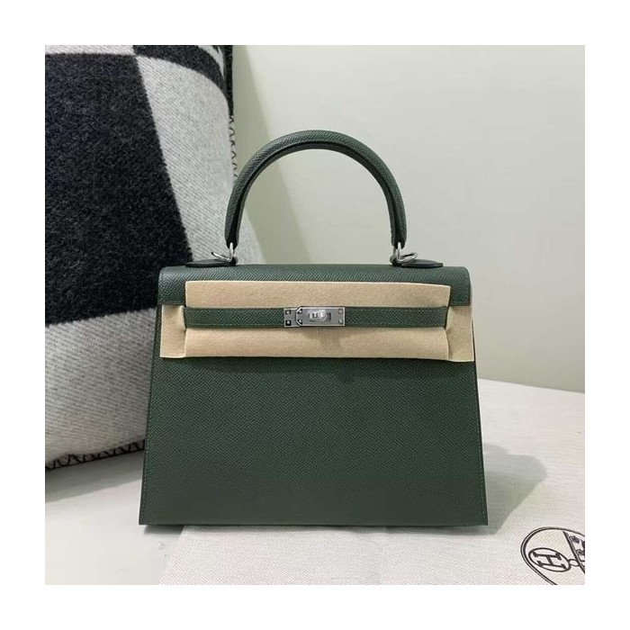• Hermès Kelly 25 Sellier Epsom Vert Cyprès x Palladium Hardware