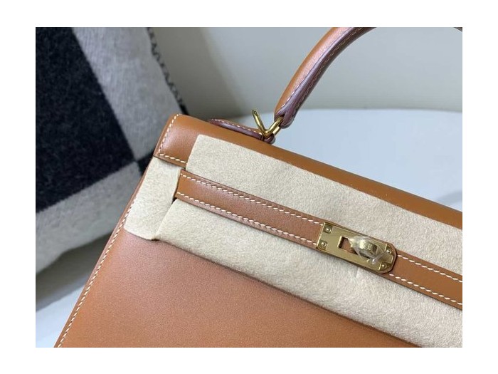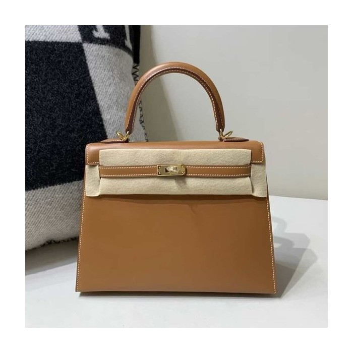 Hermès Kelly 25 Sellier Box Calf Gold x Gold Hardware > Kelly25