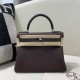 • Hermès Kelly25 Clemence Ébène x Palladium Hardware