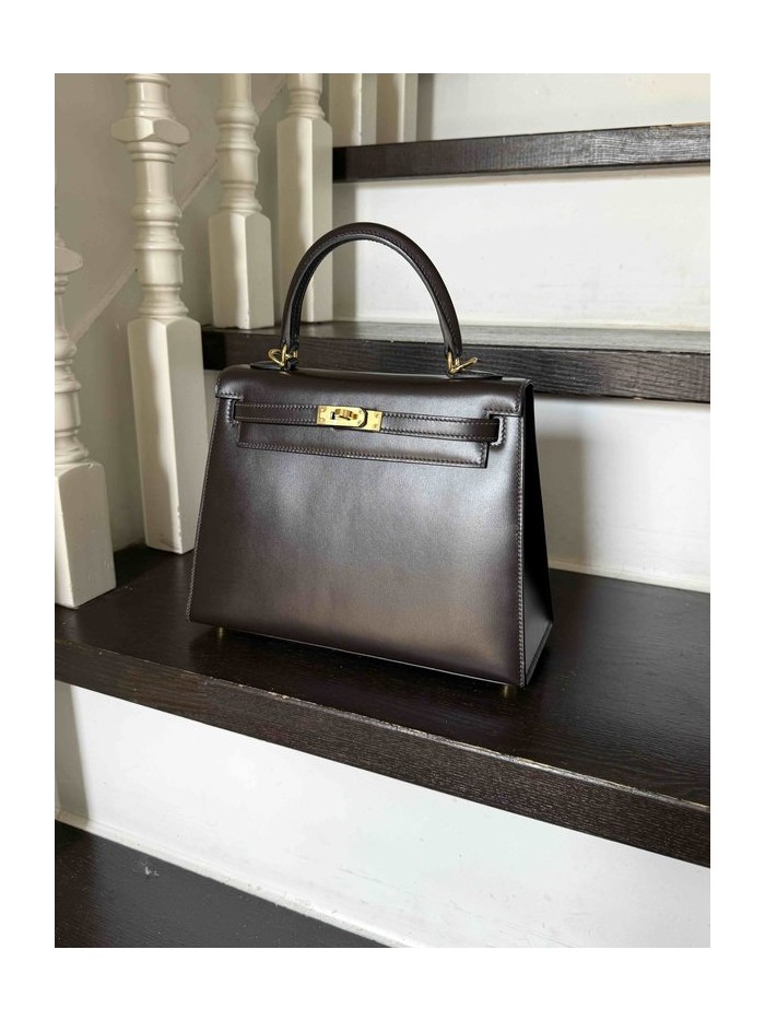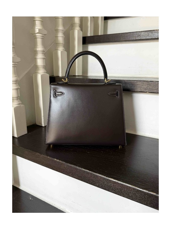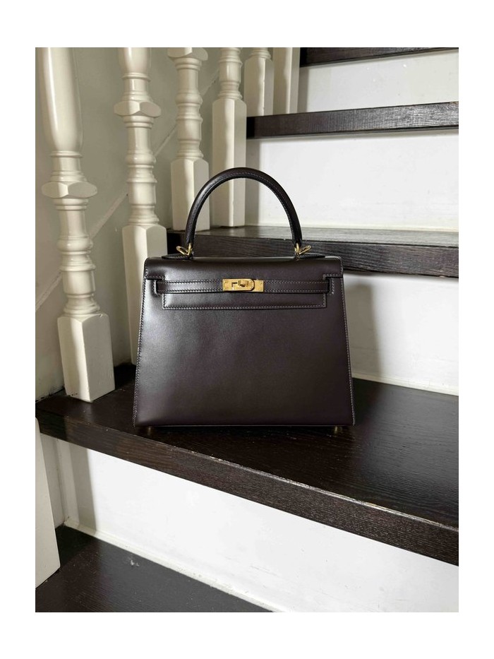 Hermes Kelly 25 Box Ebene x Gold Hardware