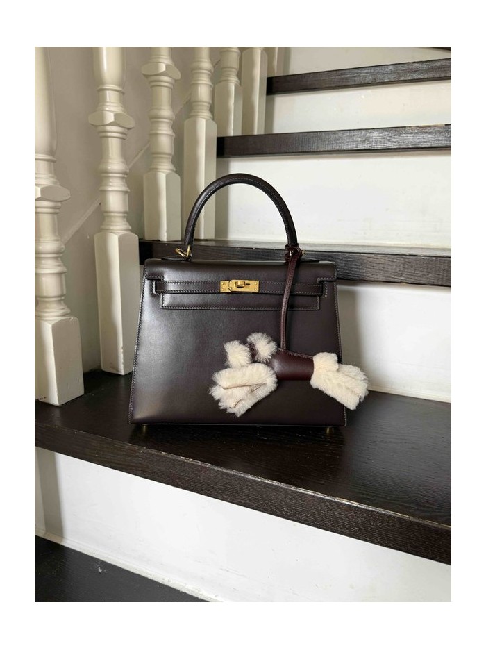• Hermes Kelly 25 Box Ebene x Gold Hardware