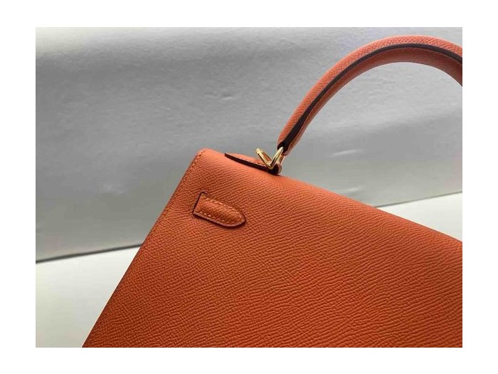 Hermès Kelly 25 Sellier Epsom Orange x Gold Hardware > Kelly25