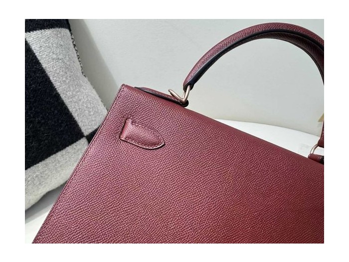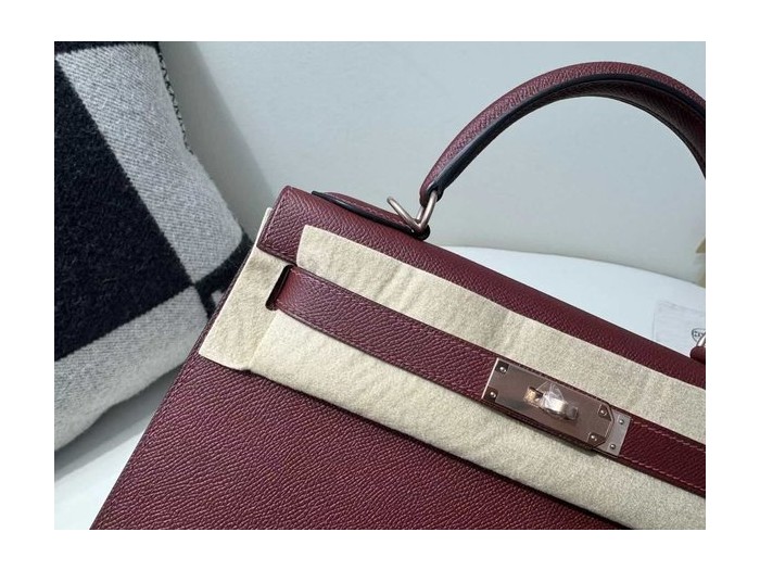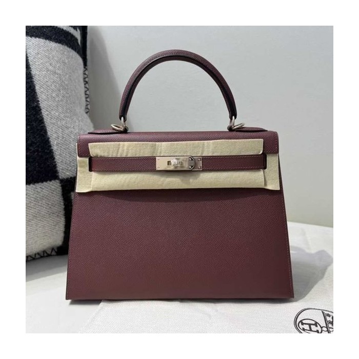 Hermès Kelly 25 Sellier Epsom Rouge H x Palladium Hardware > Kelly25