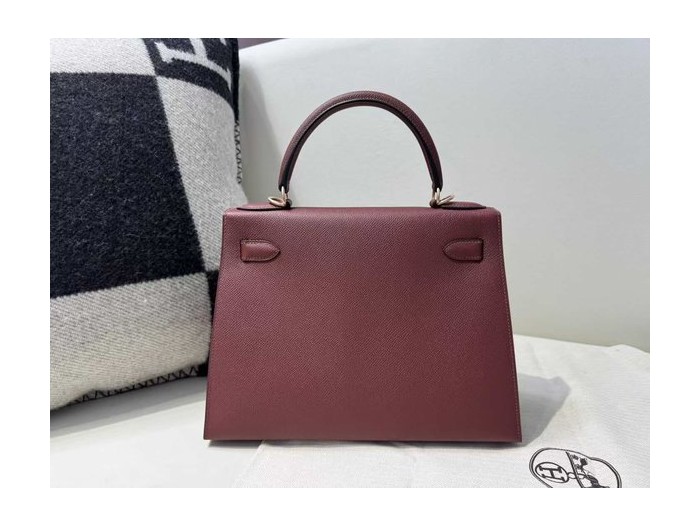 • Hermès Kelly 25 Sellier Epsom Rouge H x Palladium Hardware