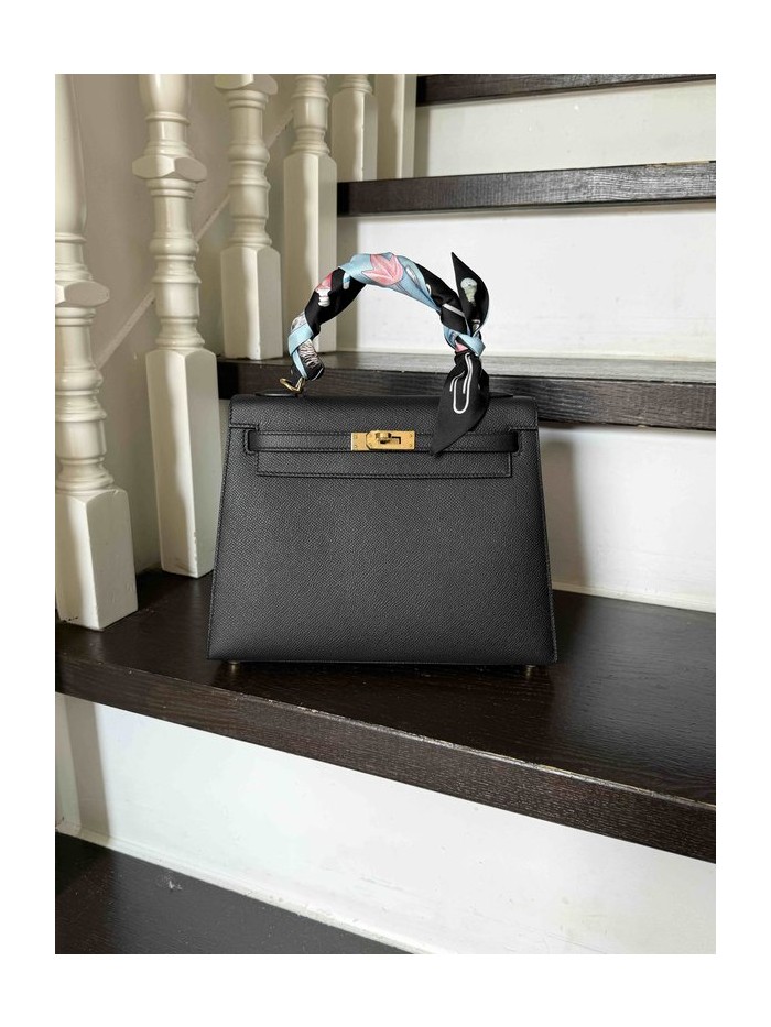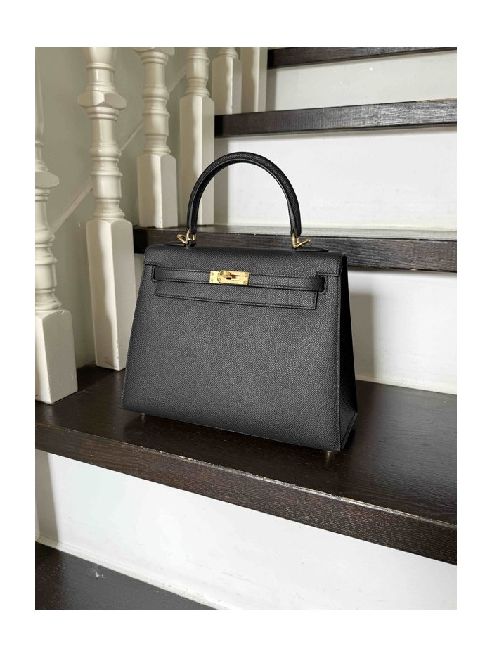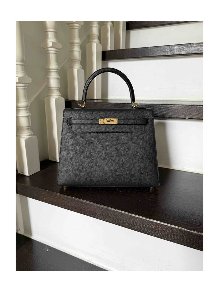 • Hermès Kelly 25 Noir Epsom x Gold Hardware