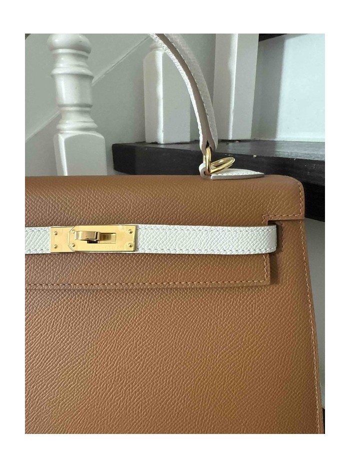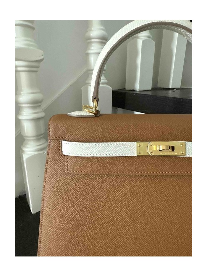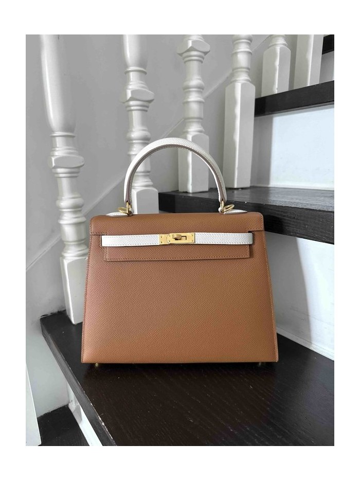 Hermès Kelly25 Gold x Blanc x Gold Hardware