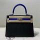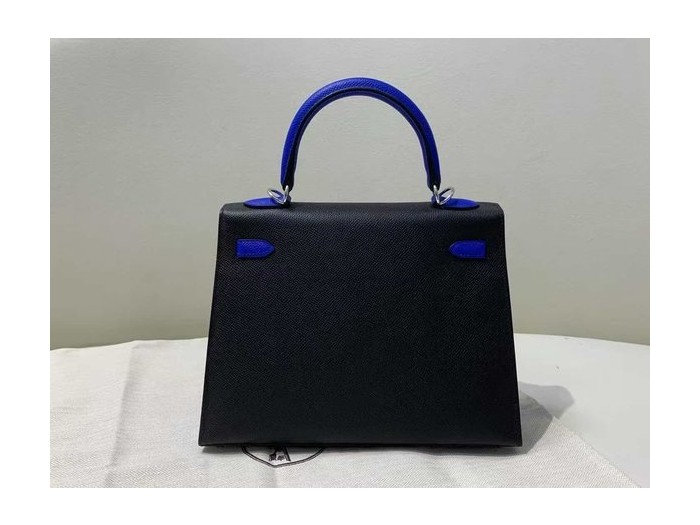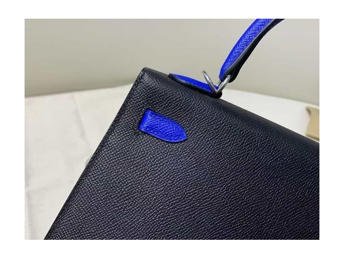 • Hermès Kelly 25 Epsom Sellier Noir x Electric Blue x Palladium Hardware
