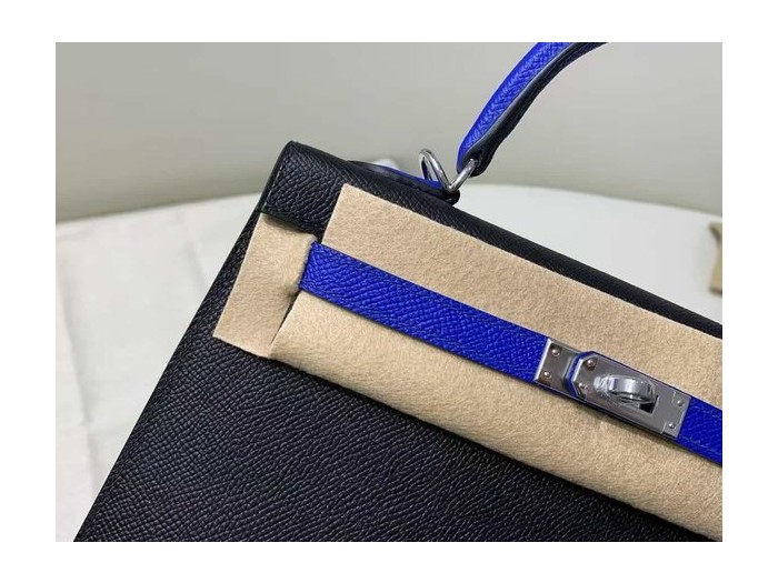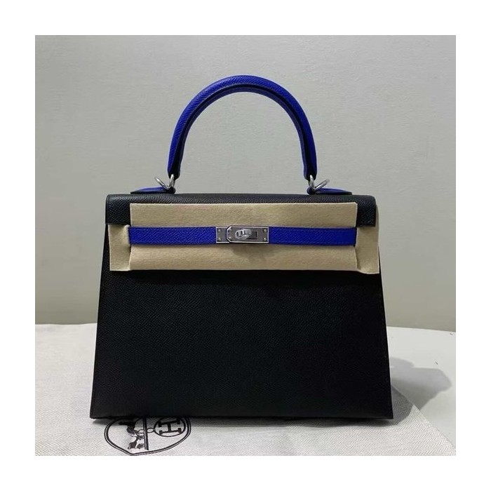 Hermès Kelly 25 Epsom Sellier Noir x Electric Blue x Palladium Hardware > Kelly25