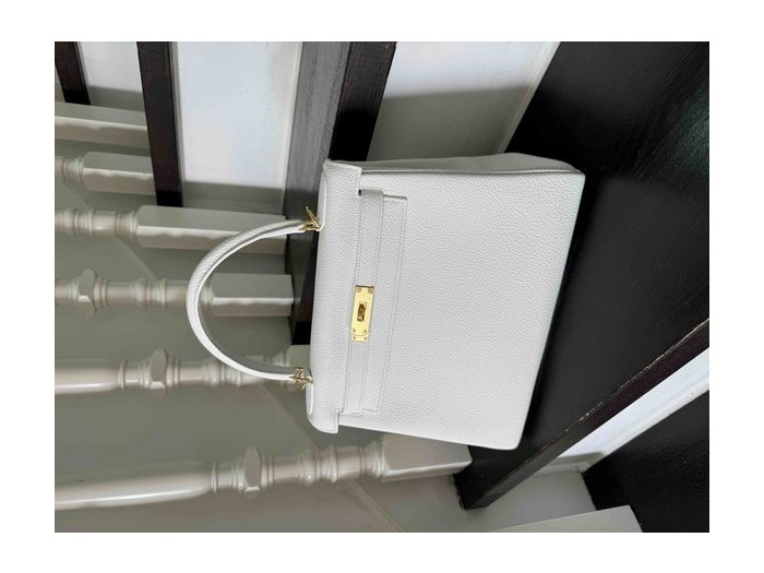 • Hermès Kelly28 Togo Blanc x Gold Hardware