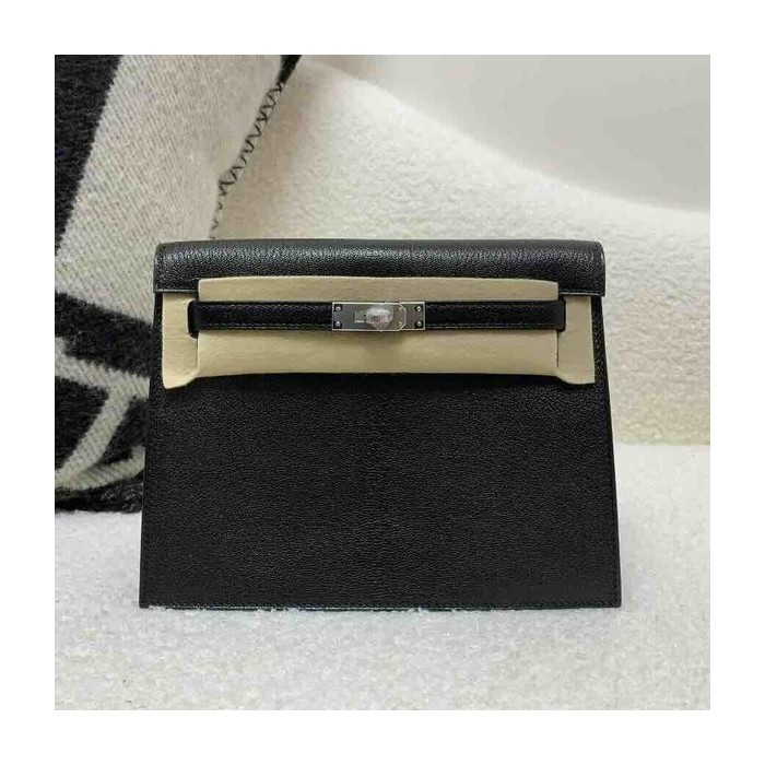 • Hermès Kelly Danse Chevre Noir with Gold Hardware