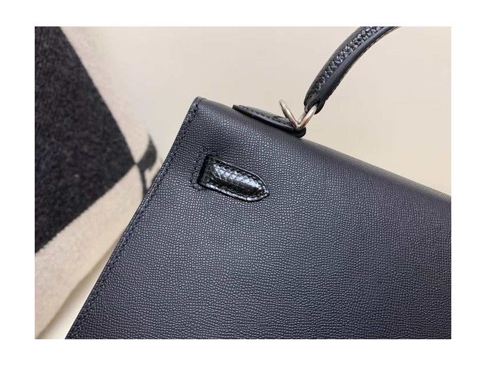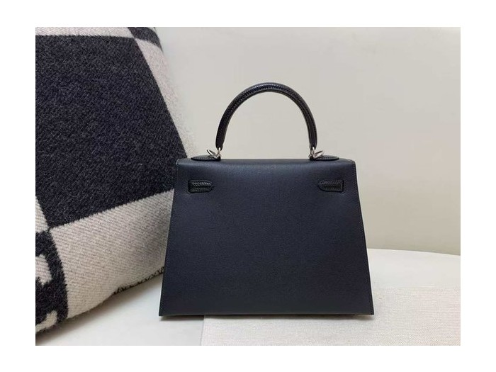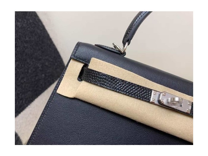 Hermès Kelly 25 Sellier Touch Epsom & Lizard Noir x Palladium Hardware