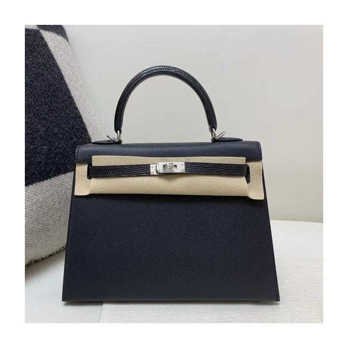 • Hermès Kelly 25 Sellier Touch Epsom & Lizard Noir x Palladium Hardware