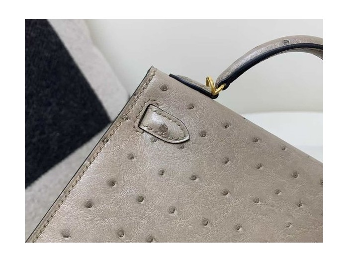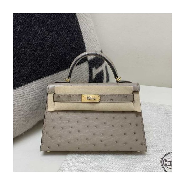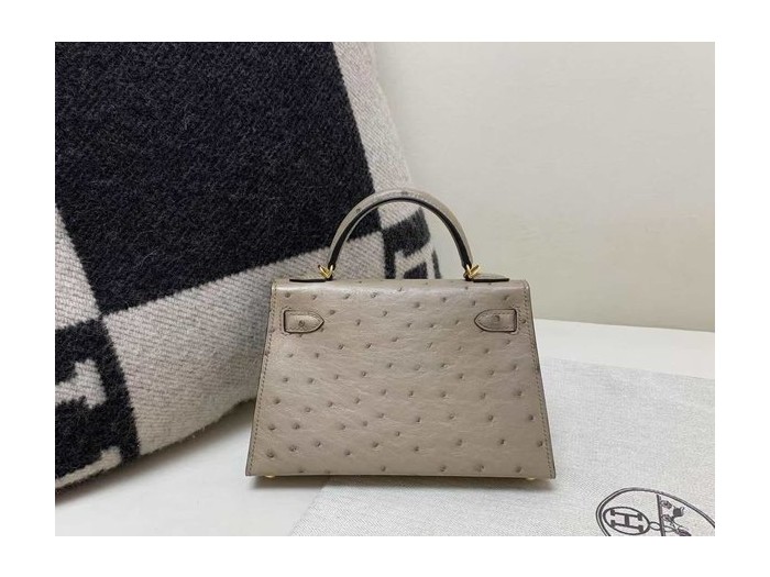 Hermès Kelly Mini II ostrich Gris Tourterelle x Gold hardware
