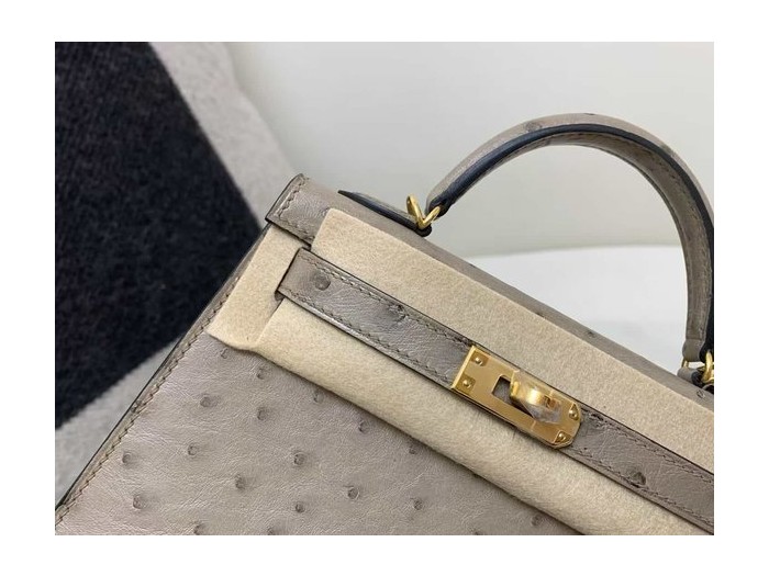 Hermès Kelly Mini II ostrich Gris Tourterelle x Gold hardware > Ostrich